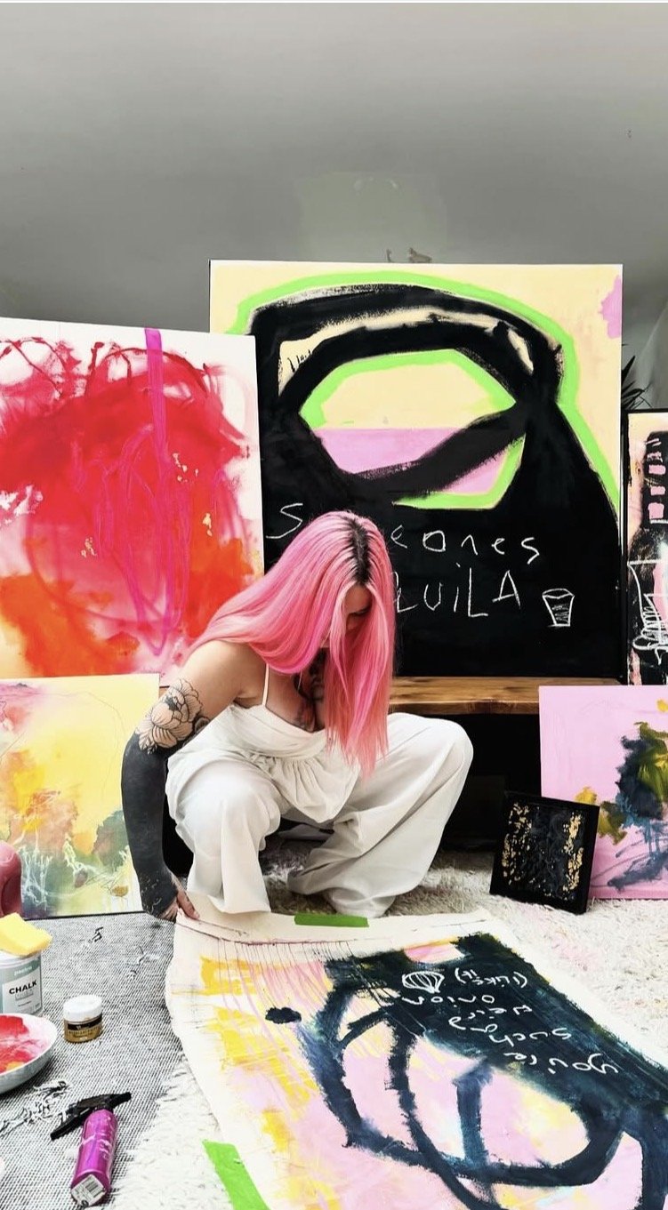“During lockdown, I craved the expression I had missed from my modelling days, maybe due to the physical limitations we all faced. I found myself drawn to more emotional free painting, which is where my love for abstracts came to fruition.”