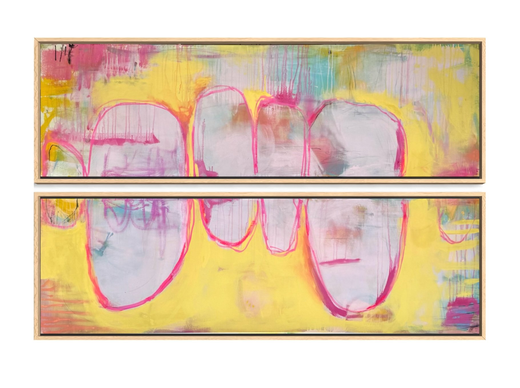 ‘Sliding Doors’, 2026. 61 x 200 cm per piece. Acrylic and mixed media on canvas.